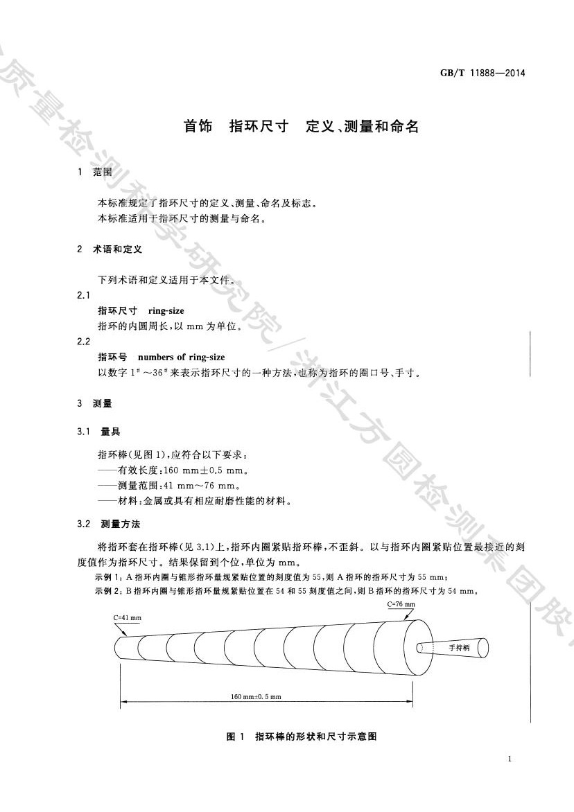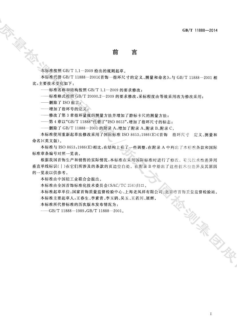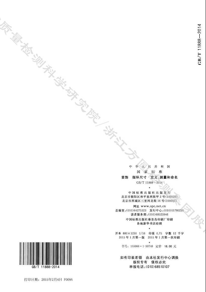 GB/T 11888-2014 《首饰指环尺寸定义、测量和命名》