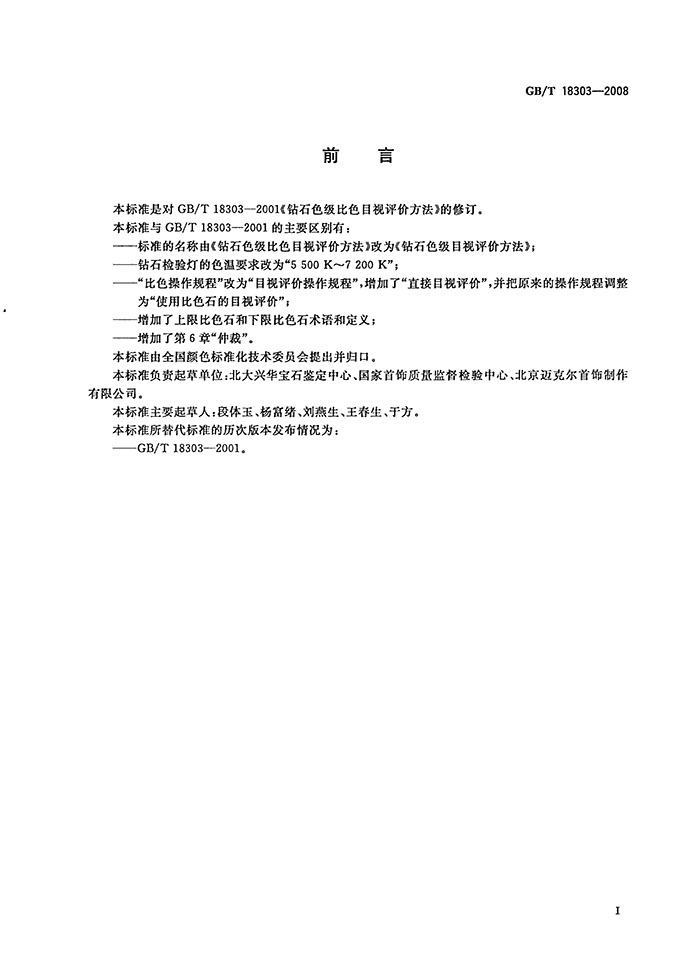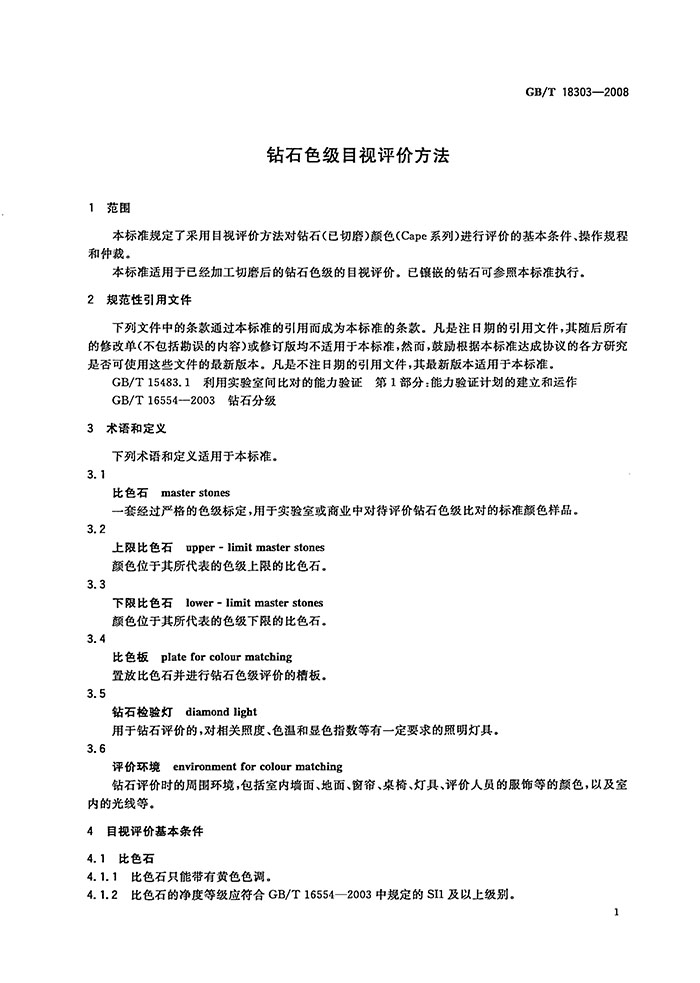 GB/T 18303-2008 钻石色级比色目视评价方法