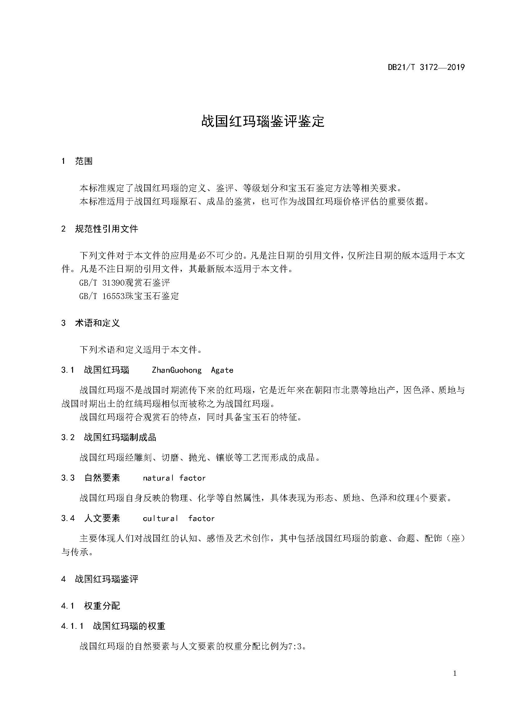 DB21/T 3172-2019 战国红玛瑙 鉴评鉴定