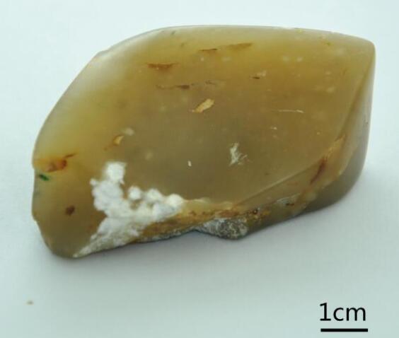 抚顺新宾云母玉以黄色和褐黄色为主色调,该玉石多为冻石,其颜色柔和,质地细腻,具有很高的经济价值。中心研究人员在常规检测的基础上,利用薄片观察、傅里叶转换红外光谱仪、X射线粉末衍射仪、X射线荧光光谱仪及紫外-可见光纤光谱仪等测试技术、对该玉石进行了宝石学特征、矿物组成、显微结构及谱学特征系统分析。结果表明,该玉石主要矿物成分为绢云母,按照国家标准《珠宝玉石 名称》(GB/T16552-2017)可定名为云母玉。