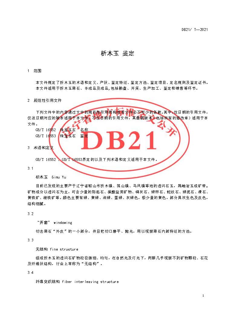 DB21/T 3497-2021 析木玉 鉴定