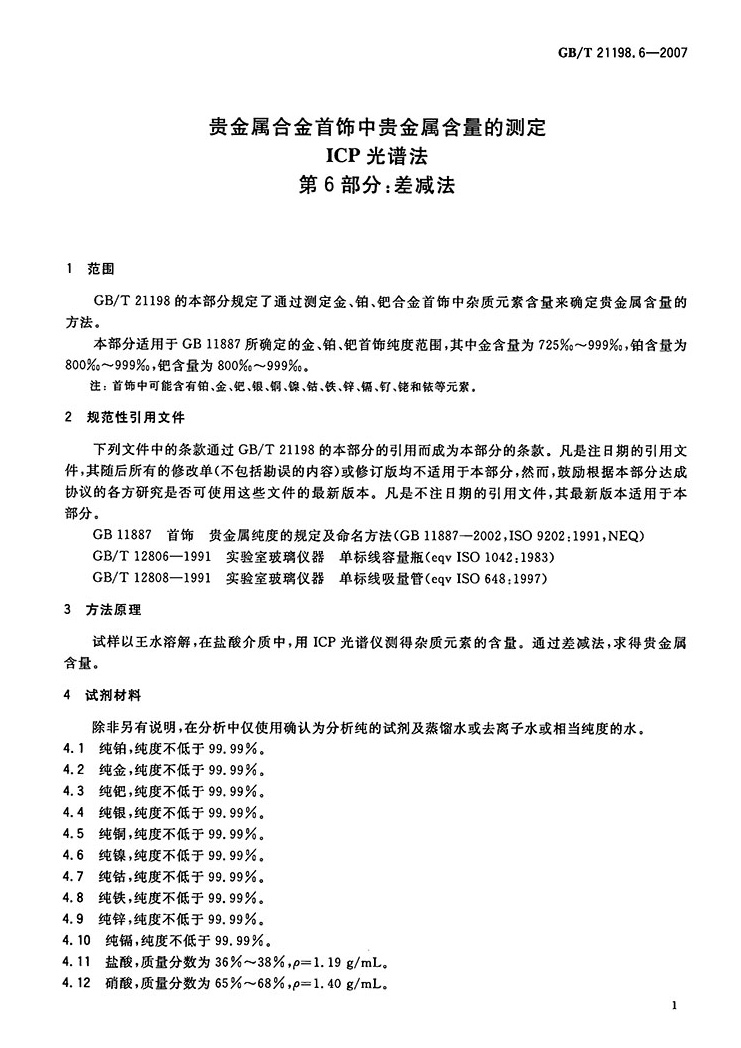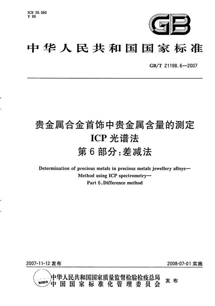 GB/T 21198.6-2007 贵金属合金首饰中贵金属含量的测定