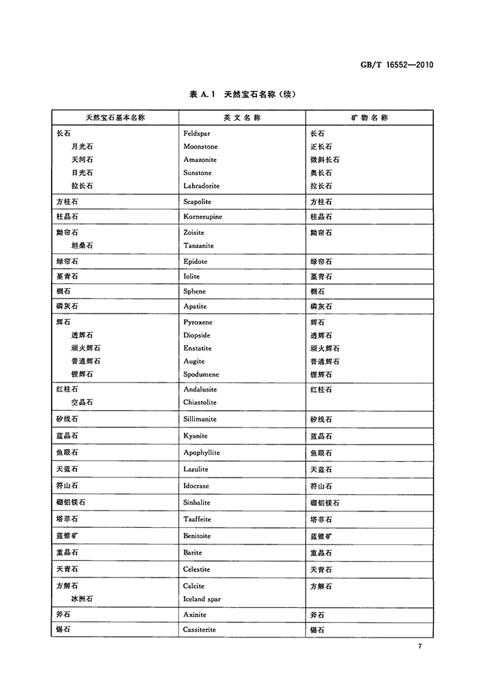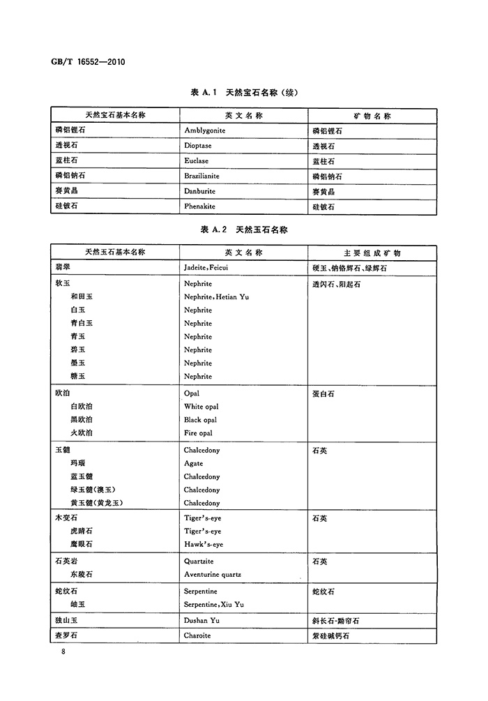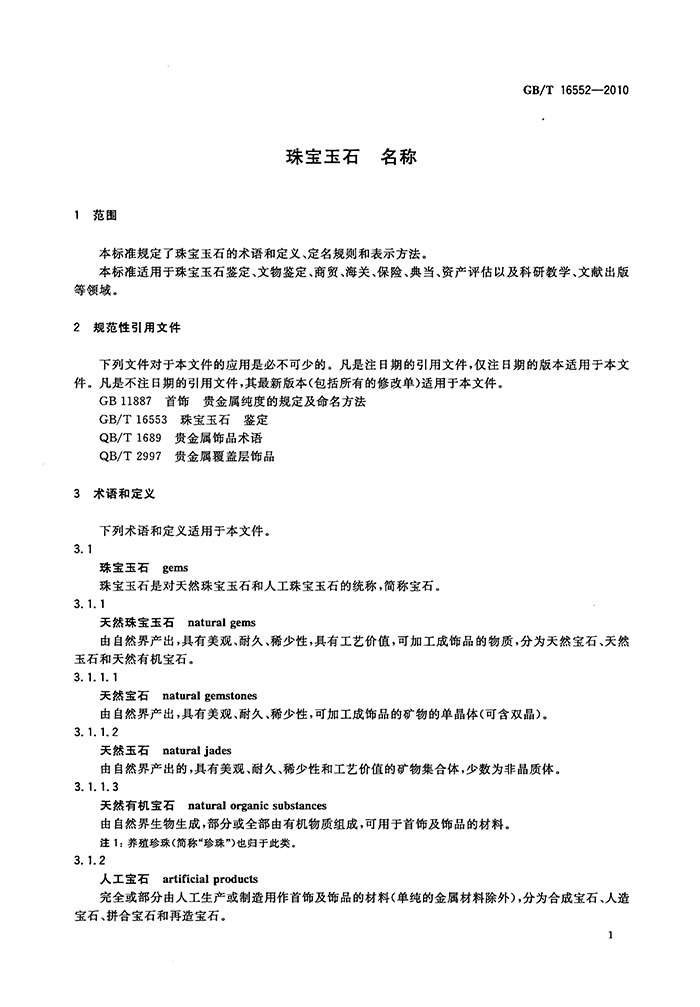 GB/T 16552-2010 珠宝玉石 名称